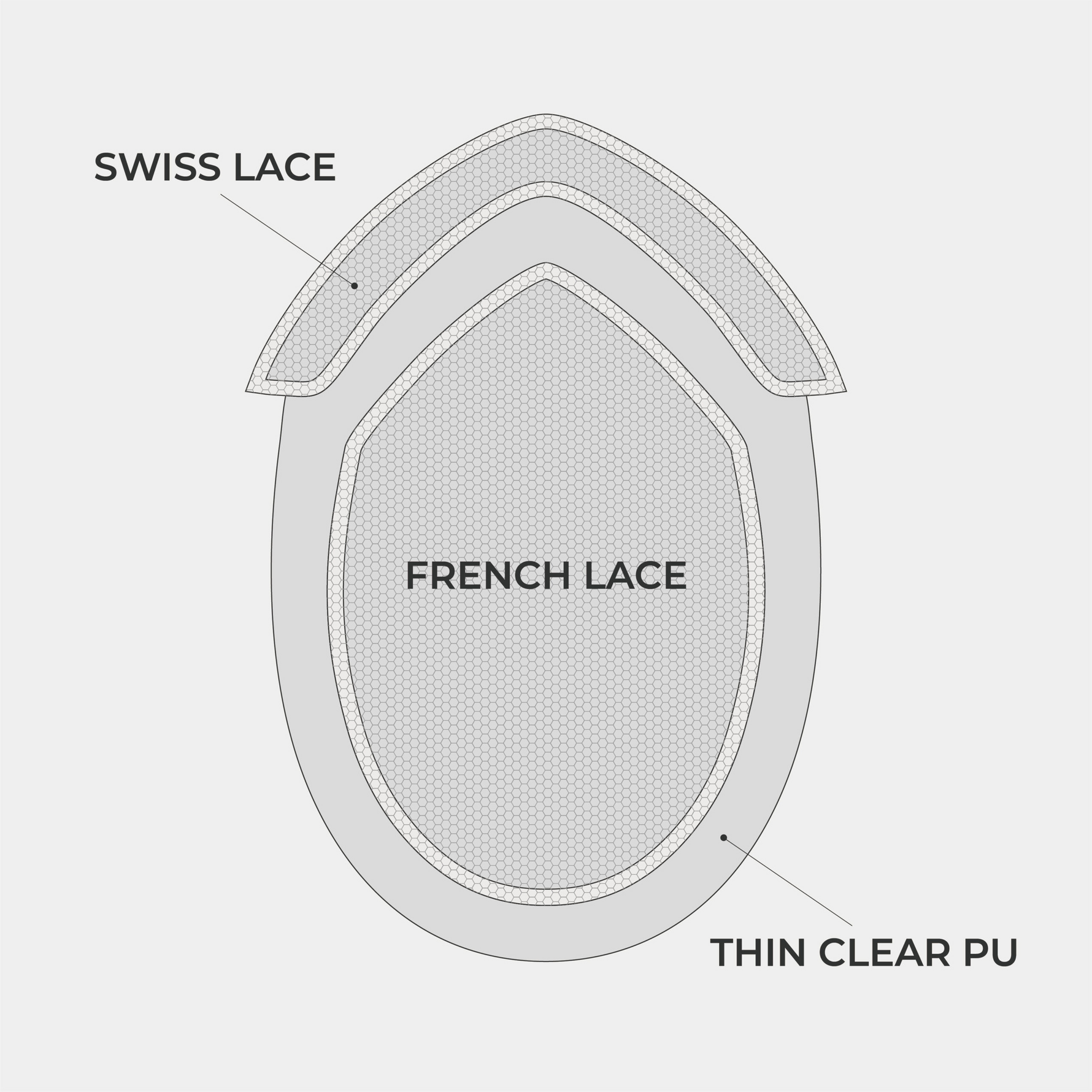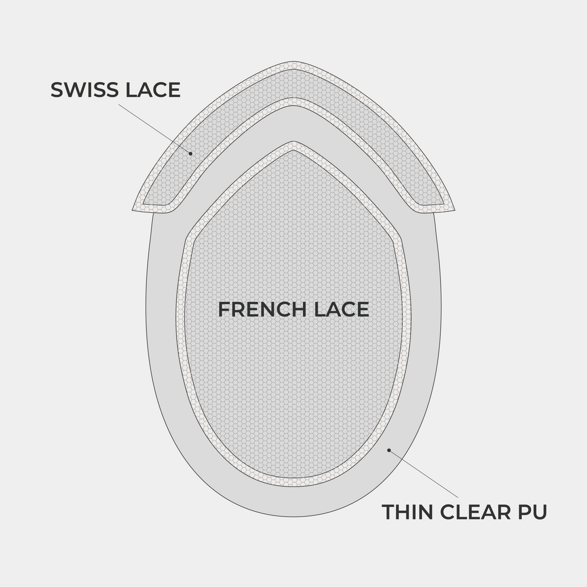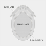 - Lace Base: Swiss lace with a clear PU perimeter and a bleached lace front